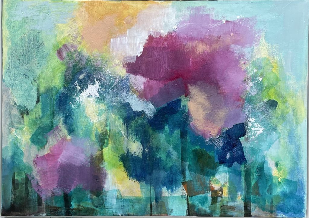 Ihre Acrylbilder sind mit Pigmenten und Acryl-Binder in vielen Schichten gemalt, dadurch entsteht eine gewisse Transparenz und Tiefe.
